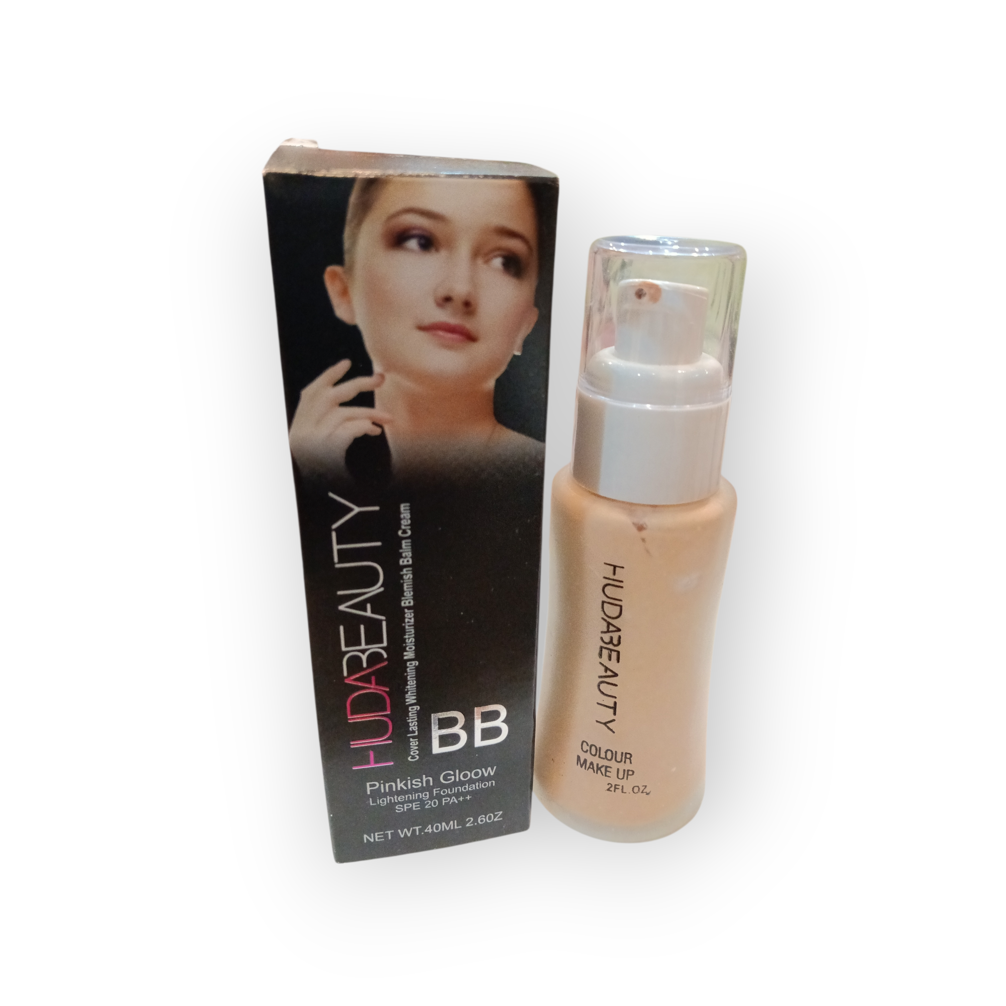 Huda Beauty pinkish glow lightning foundation cream.